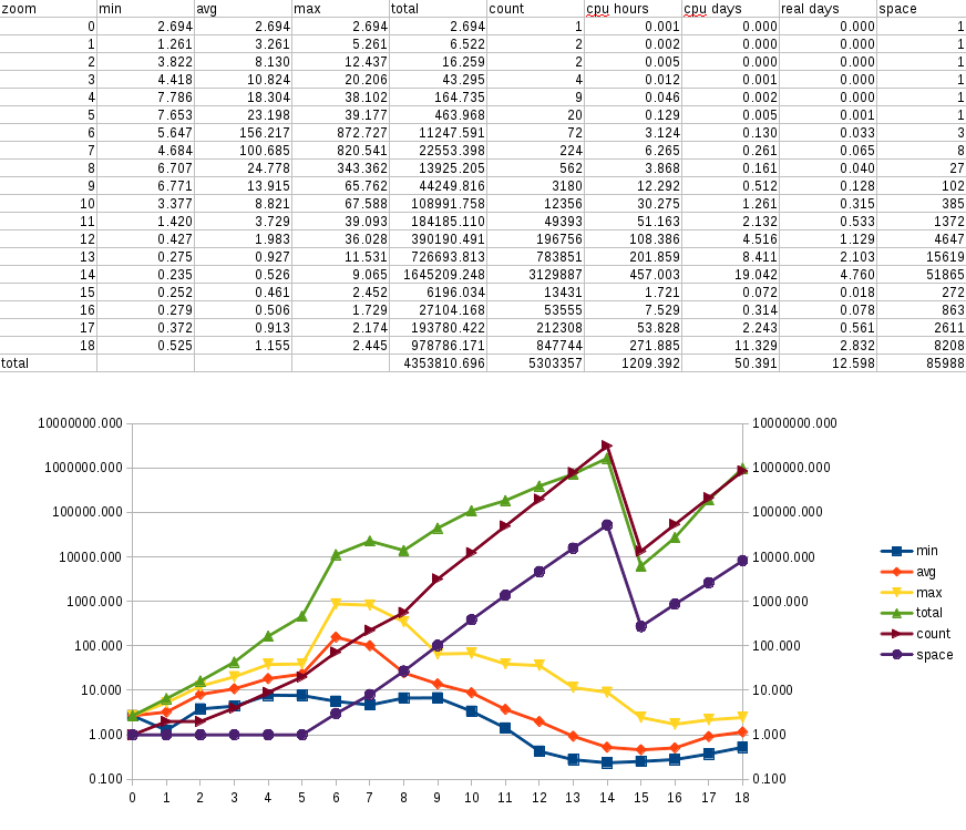 zoom levels 0 to 14, and then I'll have better numbers to share.