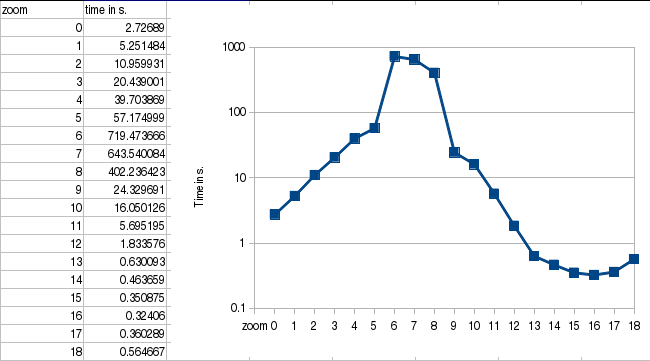between zoom levels 0 and 5, and then the big peaks (up to 720s!) for zoom levels